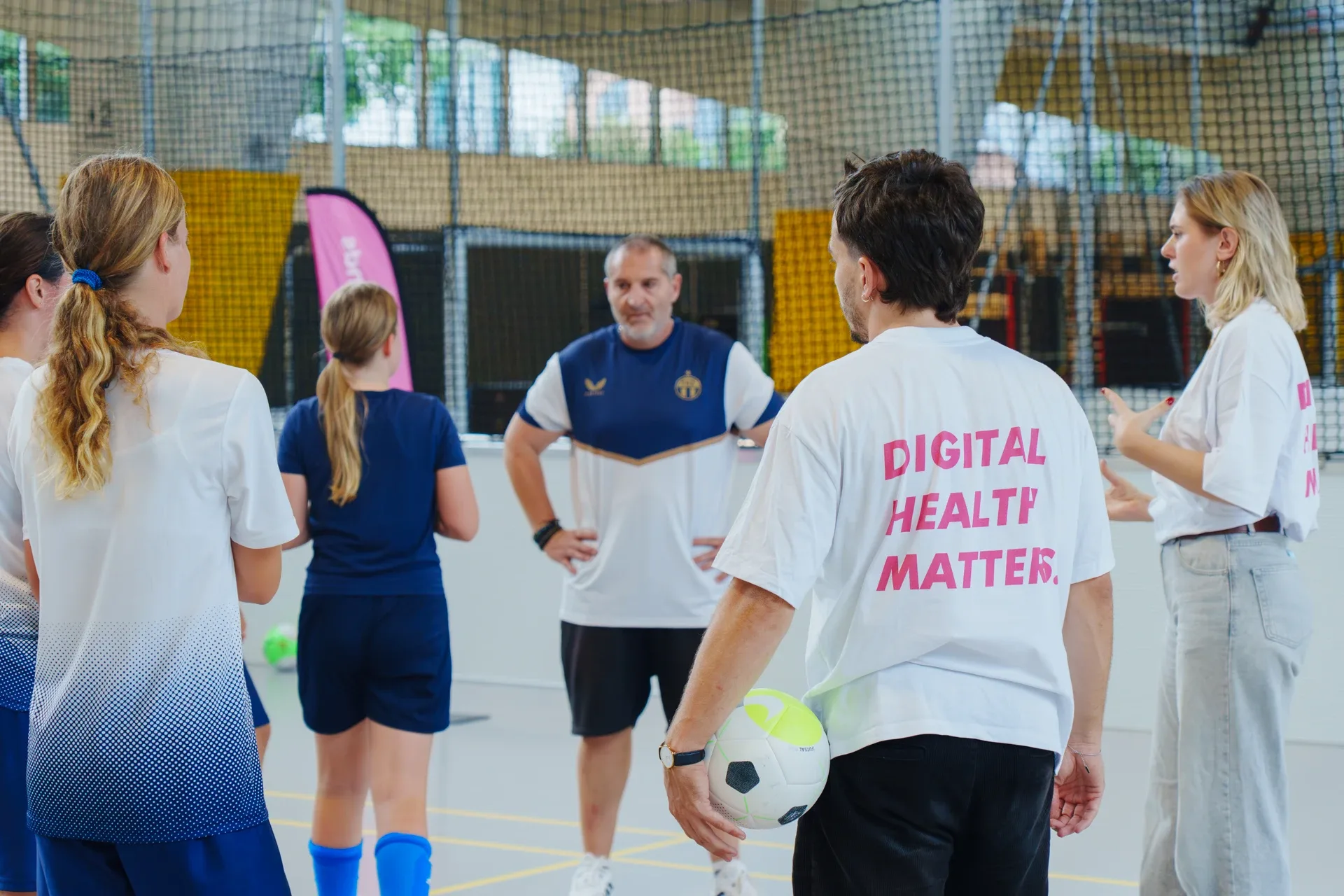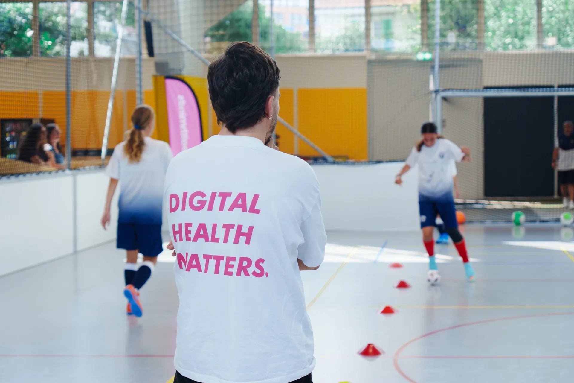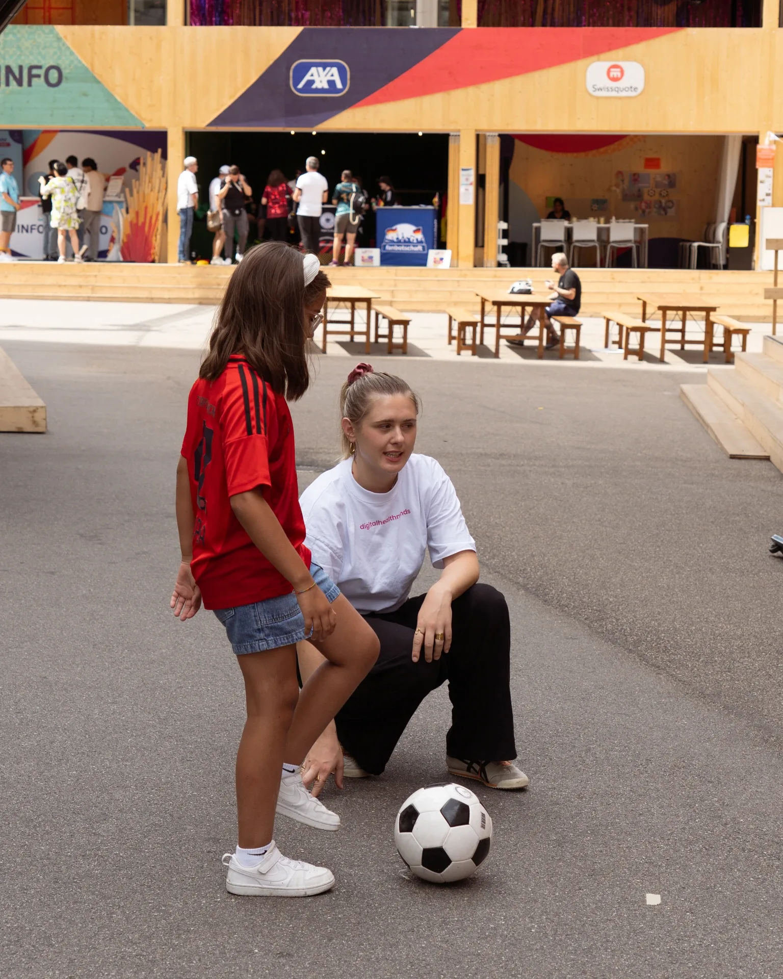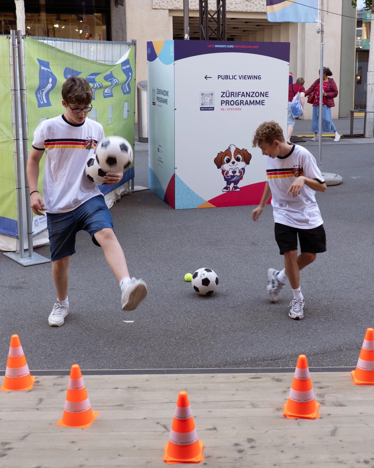 Mit gezielten Sportübungen aus dem digitalhealthminds-Programm erreicht das Team in der Europaalee-FanZone der Women’s Euro knapp 100 Kinder und Jugendliche. Spielerische Kurzinputs und viel Bewegung sensibilisieren für einen gesunden Umgang mit Social Media.